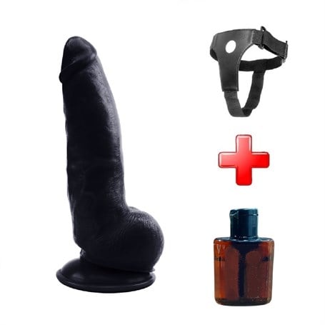 21,5 cm Belden Bağlamalı Realistik Vantuzlu Zenci Dildo Penis