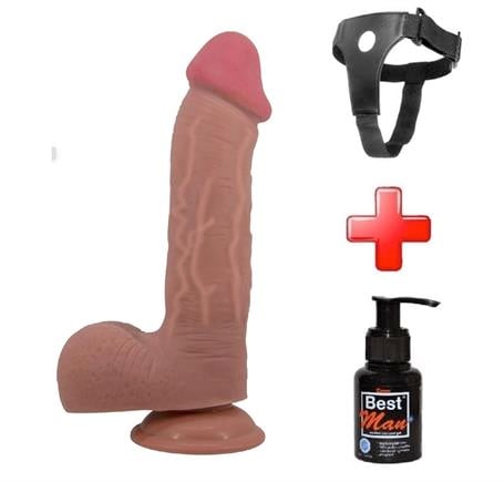 Belden Bağlamalı 23,4 cm Çift Katmanlı Gerçekçi Melez Dildo Penis