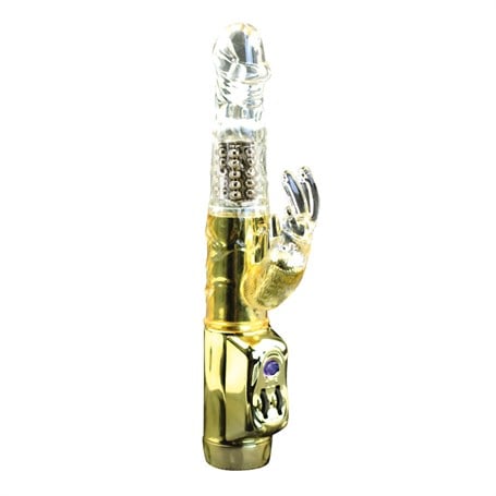 Oynar Başlı Klitoris Uyarıcılı Altın Renkli Teknolojik Tavşan Vibratör Penis
