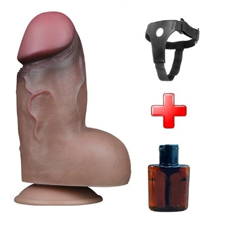 Yeni Nesil Çift Katmanlı Belden Bağlamalı 18,2 cm Realistik Kalın Dildo Penis